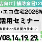 補助金最大125万円獲得!みらいエコ住宅2026補助金“簡単”活用セミナー
